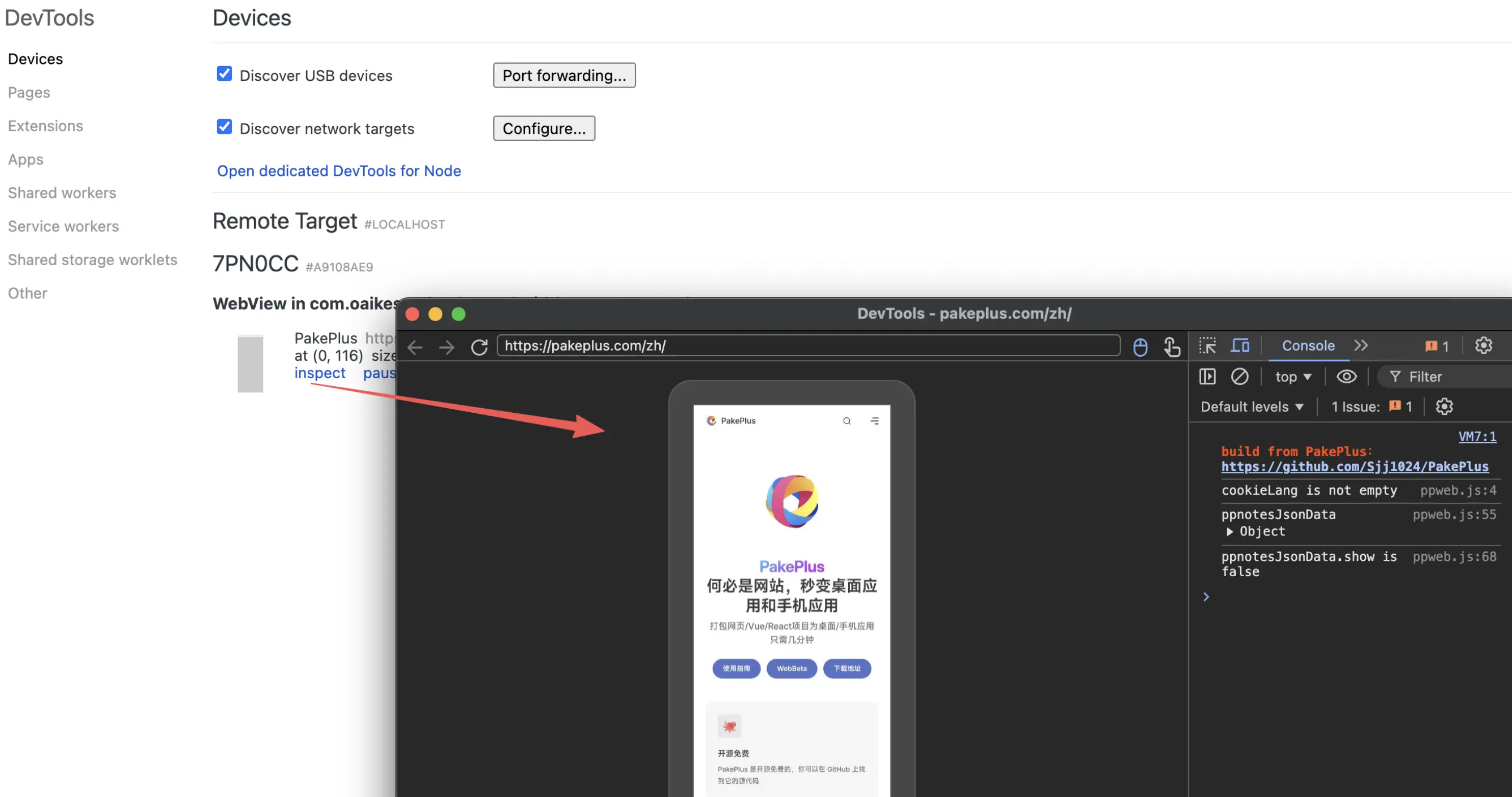 发布版本中可以开启移动端调试,选择开启调试后,等安装到移动端就可以连接电脑进行调试。