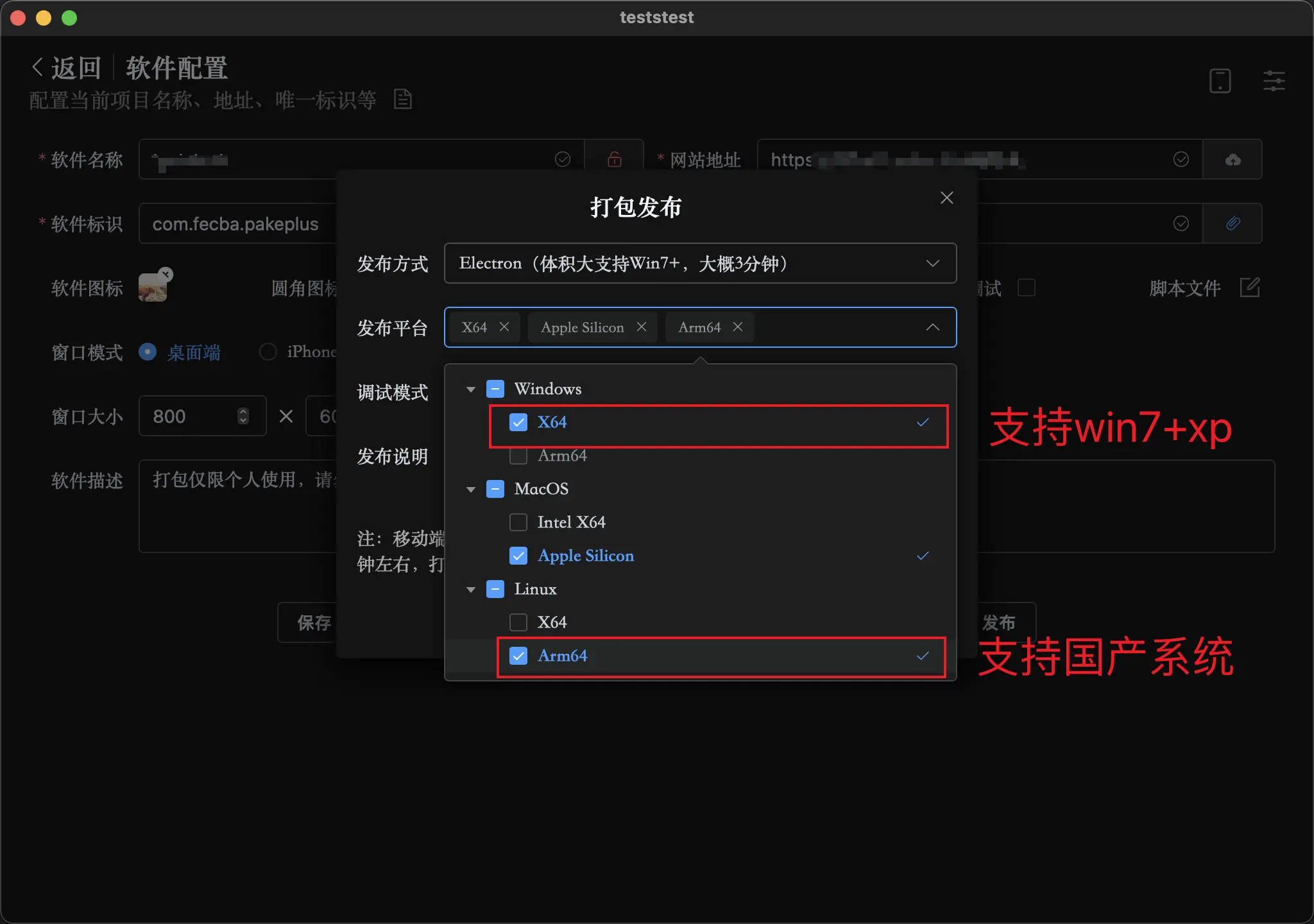 支持 Win7 和 xp:可以支持打包 Electron 版本,并且支持 Windows7 系统以及国产 Linux Arm 系统,发布时候选择 Electron 版本即可: